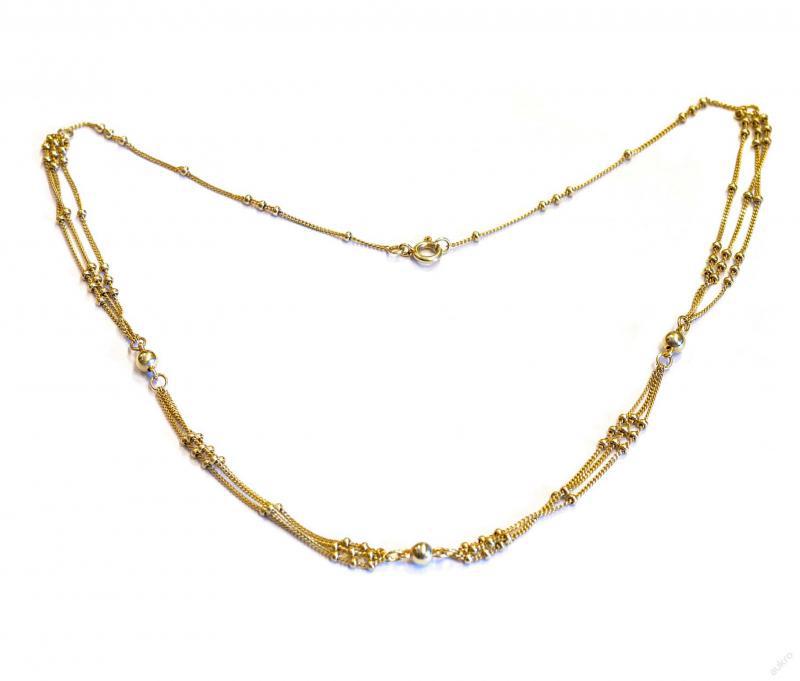 Zlatý dámský řetízek ve žlutém zlatě. Zlatý řetízek je vyroben ze zlaté řetězoviny proložené kuličkami většími (průměr 4 mm) a menšími (průměr 2 mm). Velice pěkný řetízek v netradičním provedení. Šperk je bez vad a poškození.