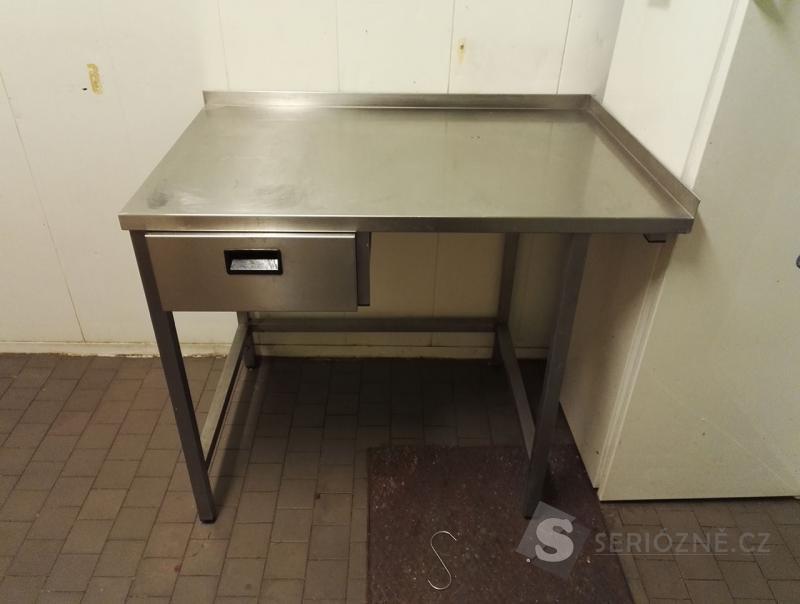 Nerez stůl. Bytelný se zásuvkou. Rozměry 120x70x80 cm.