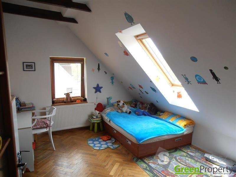Kompletně zrekonstruovaný a pečlivě udržovaný RD 4+kk o velikosti 230 m² se zahradou 844 m² a bazénem (8x4m) v klidné části Prahy 9 - Kyjích. V přízemí RD se nachází prostorný obývací pokoj s přímým vstupem na terasu a zahradu, jídelnou a kuchyňským koutem o rozloze 75 m². V přízemí je ještě velká koupelna s rohovou vanou a WC. V první patře jsou 2 dětské pokoje, ložnice a druhá koupelna se sprchovým koutem a WC. V suterénu jsou hostinský pokoj, komora s vinotékou, prádelna a WC. Za domem je krásná, profesionálně udržovaná zahrada, velký bazén, zahradní krb s pergolou a kryté stání pro dvě auta. Další až 4 parkovací místa jsou před domem v klidné ulici. V ceně služeb je kromě všech médií obsažen i zahradník a uklizečka. RD má výbornou dopravní dostupnost jak autem, tak i veřejnou dopravou. Nachází se mezi sjezdem z jižní spojky a sjezdem z pražského okruhu nedaleko dálnice na D10 na Mladou Boleslav a D11 na Hradec Králové. V dosahu golfové hřiště Black Bridge na Černém mostě či obchodní centrum Černý most, IKEA, Hornbach a další velké obchody.