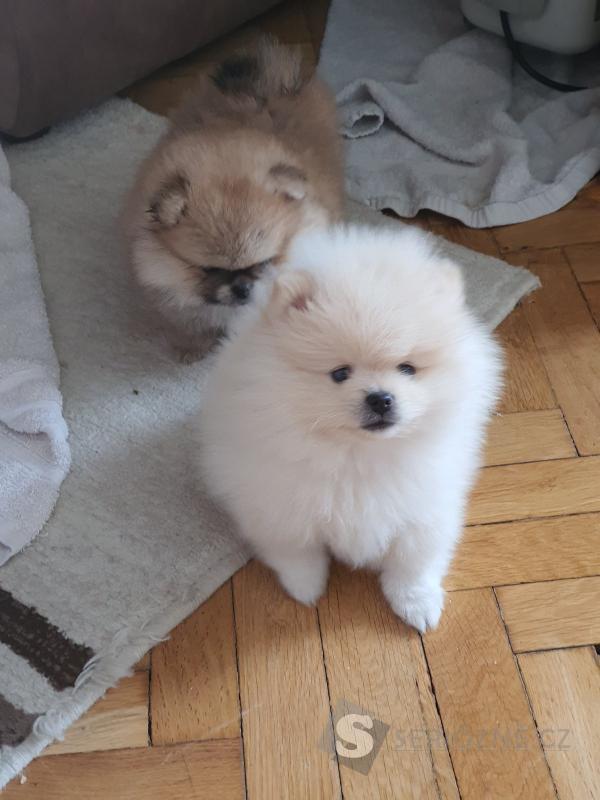 Pro rezervace máme k dispozici dvě štěňata (krémově oranžová dívka a bílý kluk).