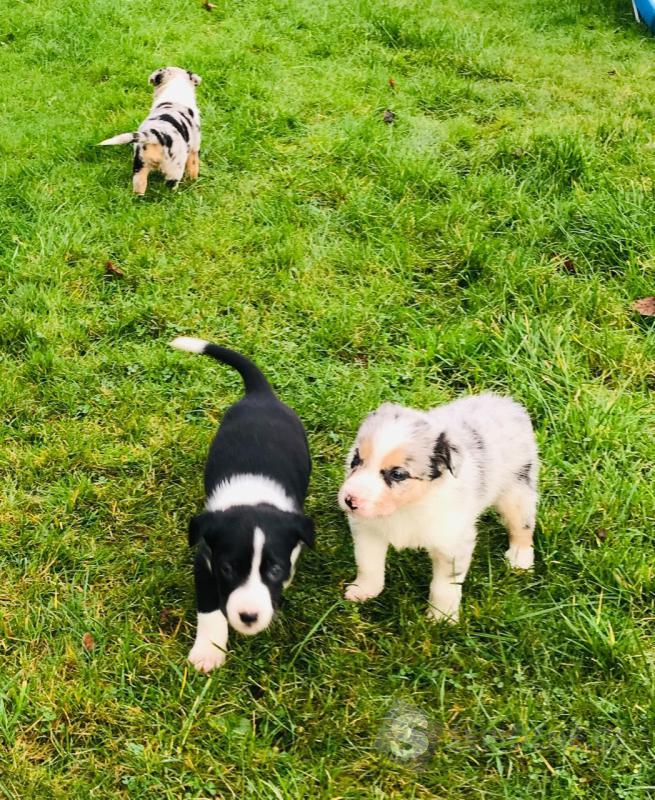 Přátelská štěňata border kolie. Dobře dospělý a socializovaný. Nyní připraveni na své nové domovy. Tato štěňata jsou zvyklá na domácí prostředí a ve svém domácím výcviku postupují dobře.