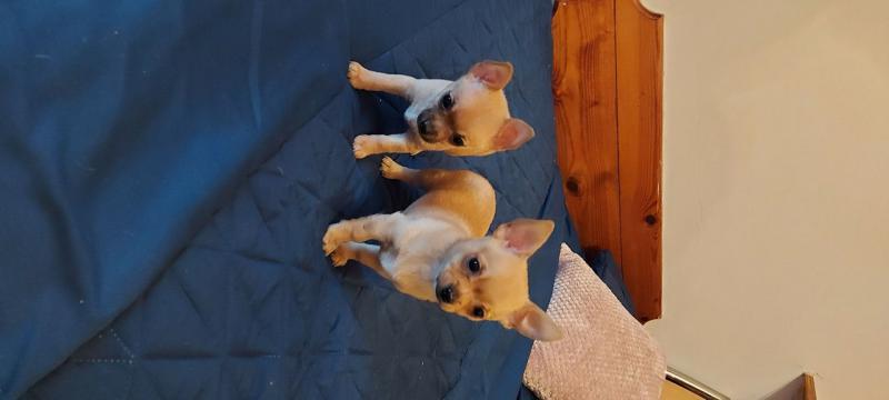 2 štěňata čivavy jsou připravena k odběru Maminku a tátu lze vidět. Máma je čistá čivava a táta je čistý šálek čaje. Štěňátka budou tedy velmi malá