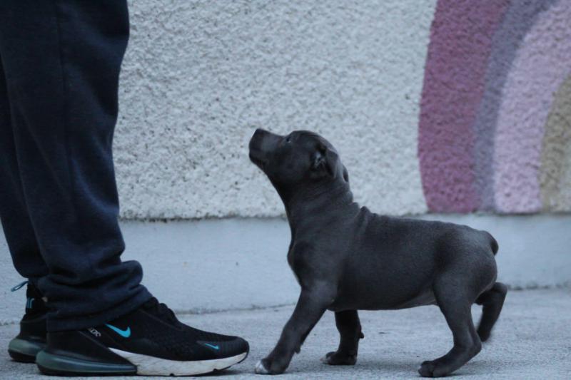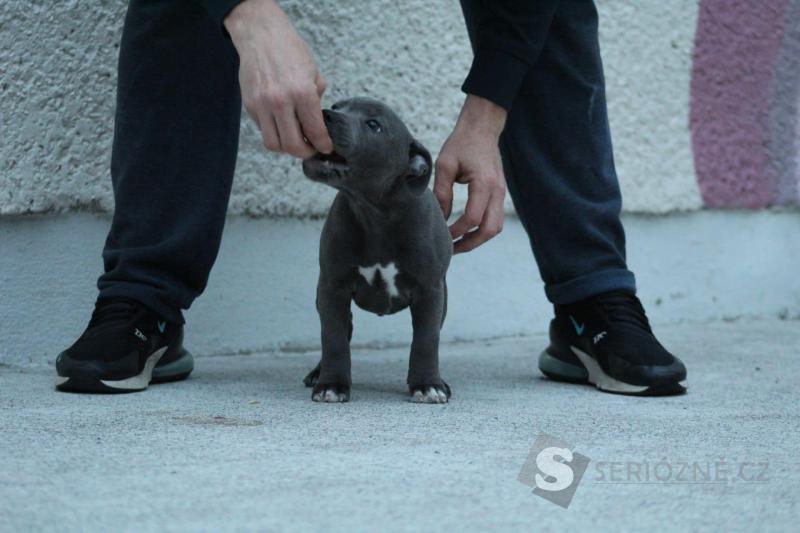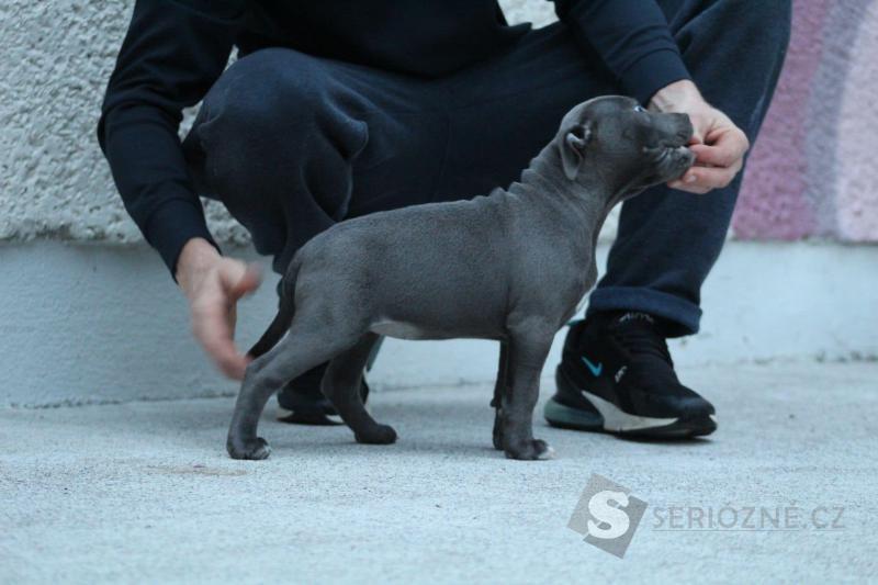 Stafordširský bulteriér. Láskyplní k dětem a dospělým.