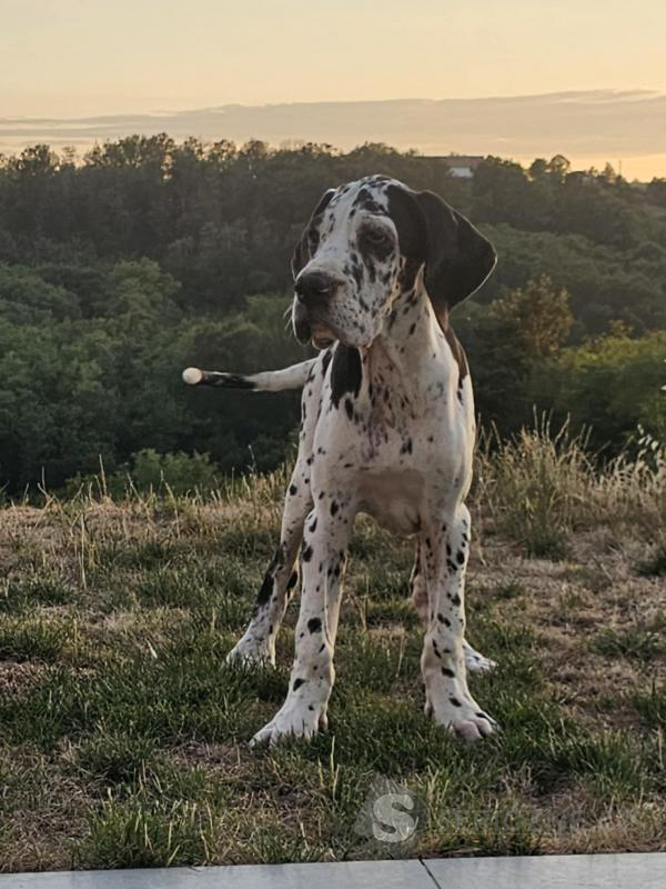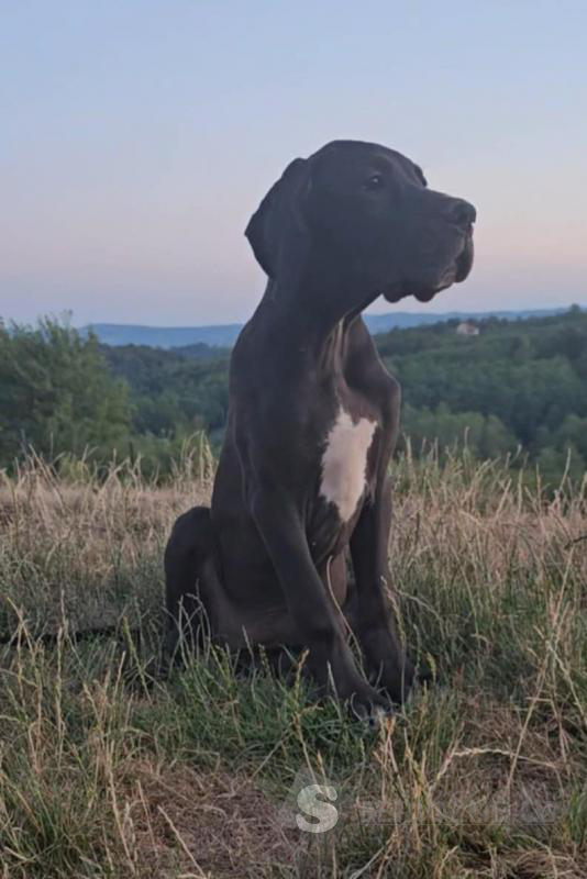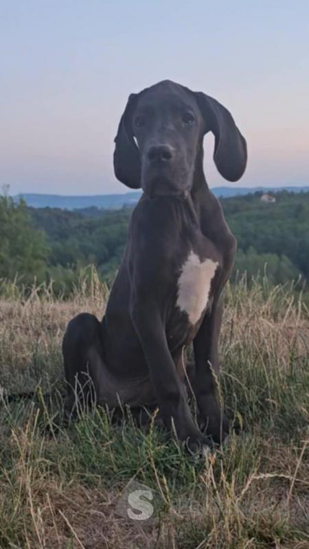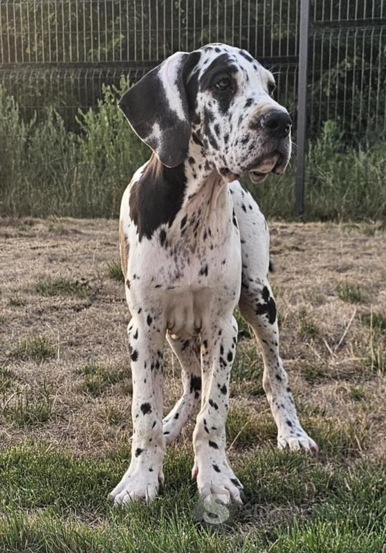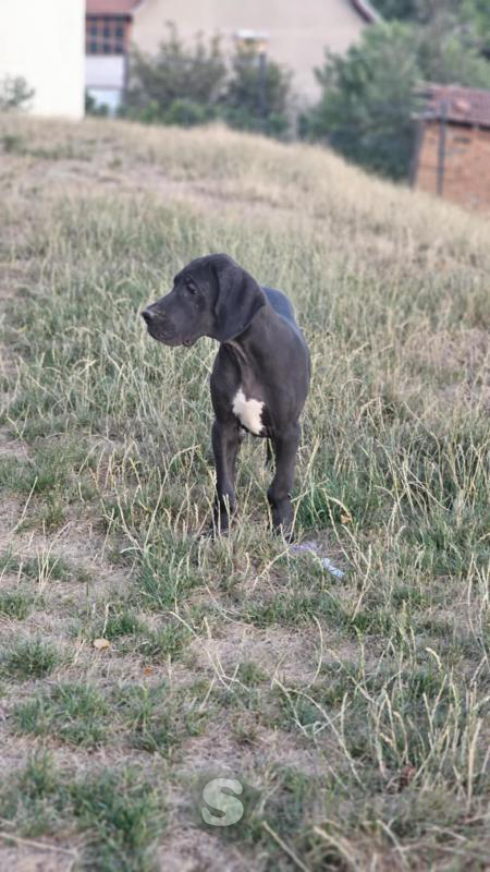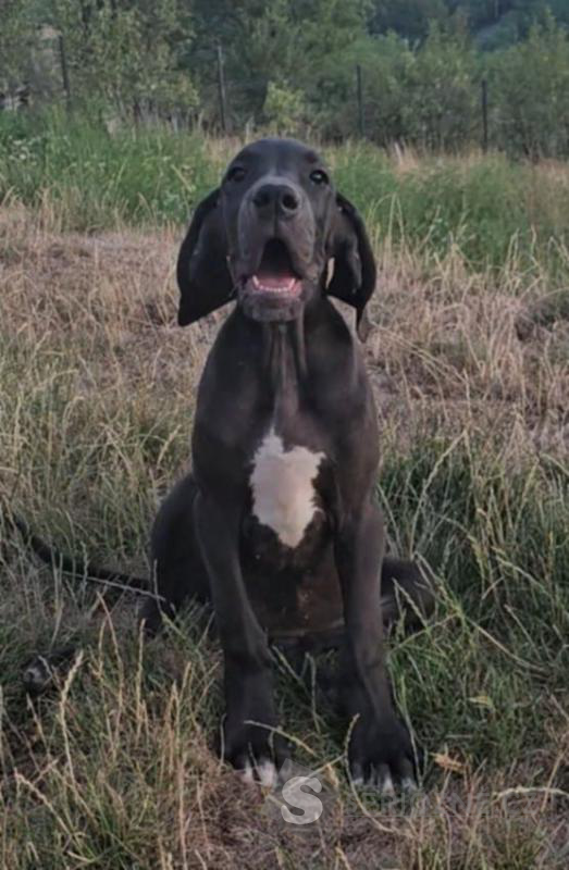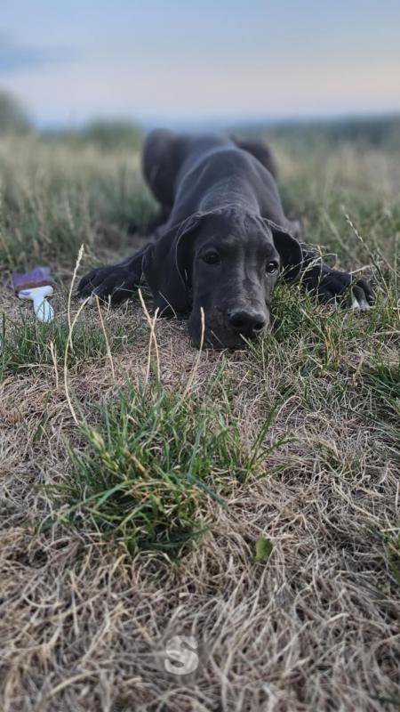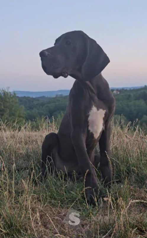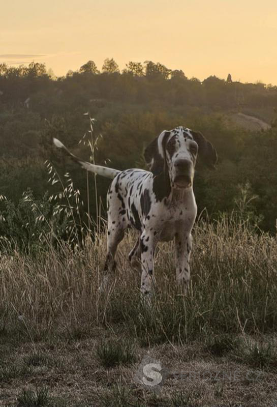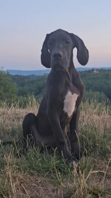K dispozici jsou dvě fenky německé dogy – jedna černá a jedna harlekýn – s výstavním potenciálem, po rodičích šampionech.