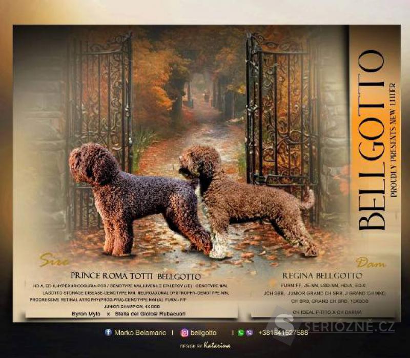 Chovatelská stanice "Bellgotto" 7522 s potěšením představuje svůj vrh štěňat Lagotto Romagnolo narozených 20. srpna 2025. Štěňata jsou špičkové kvality.