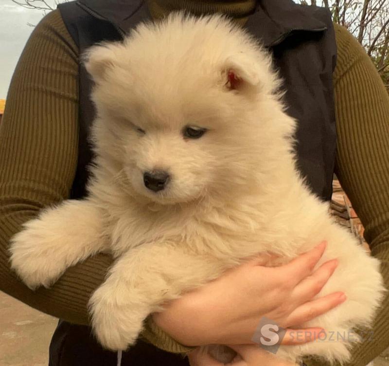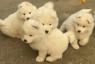 Dvouměsíční štěňata samojeda k prodeji. Očkovaná a odčervená, připravená k vyzvednutí.