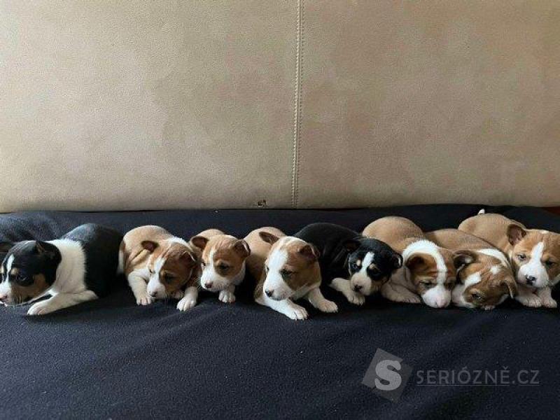 Štěňata basenji (Basenji) obou pohlaví červenobílá a trikolorní. Štěňata jsou vynikajícího původu od importovaných rodičů, které vlastníme. Naši psi mají stabilní povahu, vynikající exteriér.