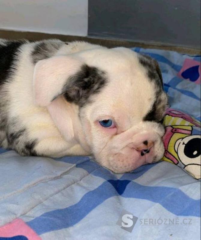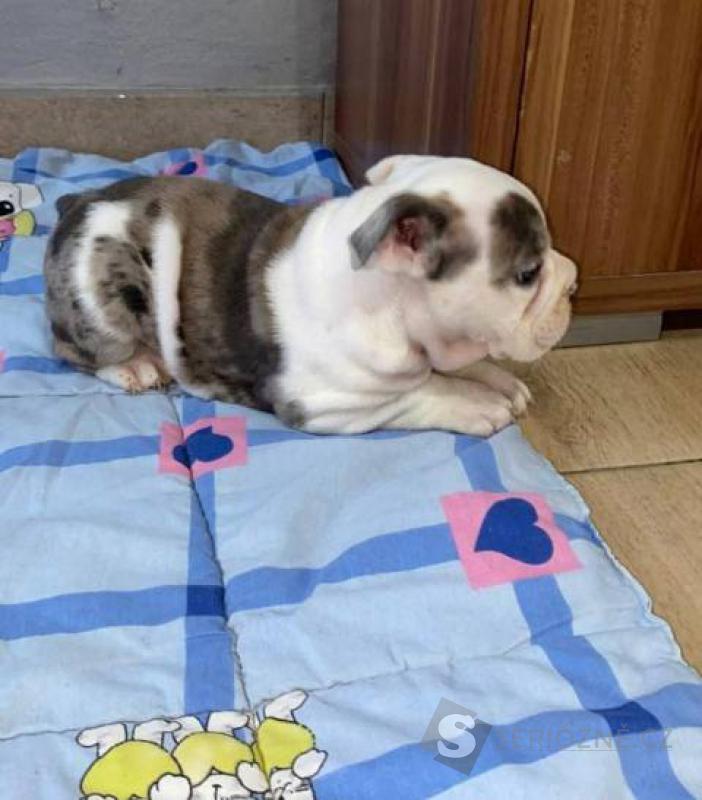 Krásná štěňata anglického buldoka na prodej. Štěňata jsou exotická, merle zbarvená, barevná a mimořádně atraktivní.