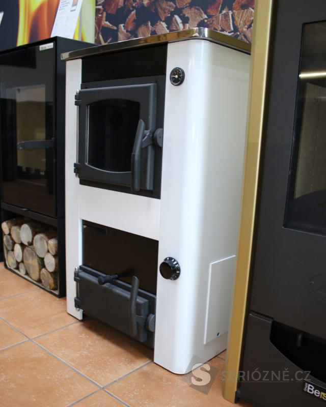 Kamna jsou vybavena regulátorem tahu, který umožňuje přesné nastavení teploty, a teploměrem zobrazujícím aktuální teplotu vody v systému.