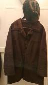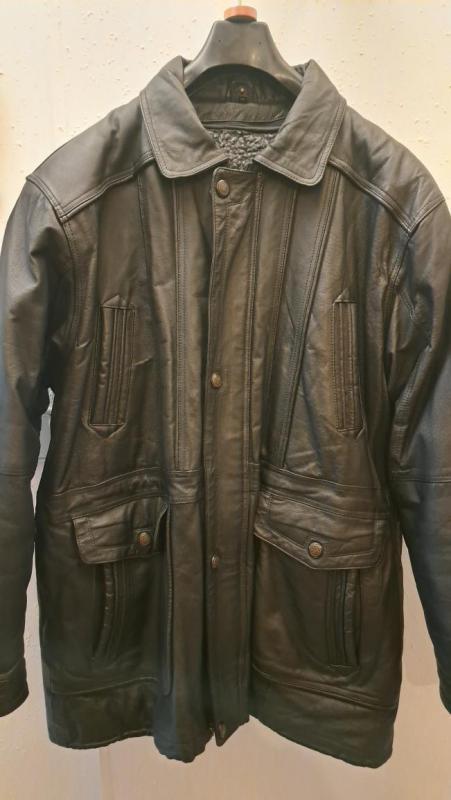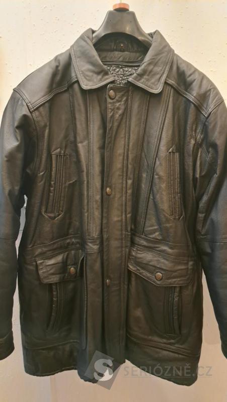 A kožený, hnědý kabát s odepínací podšívkou z umělého beránka, taky velikost 54-56.