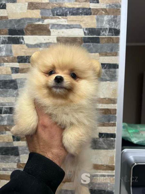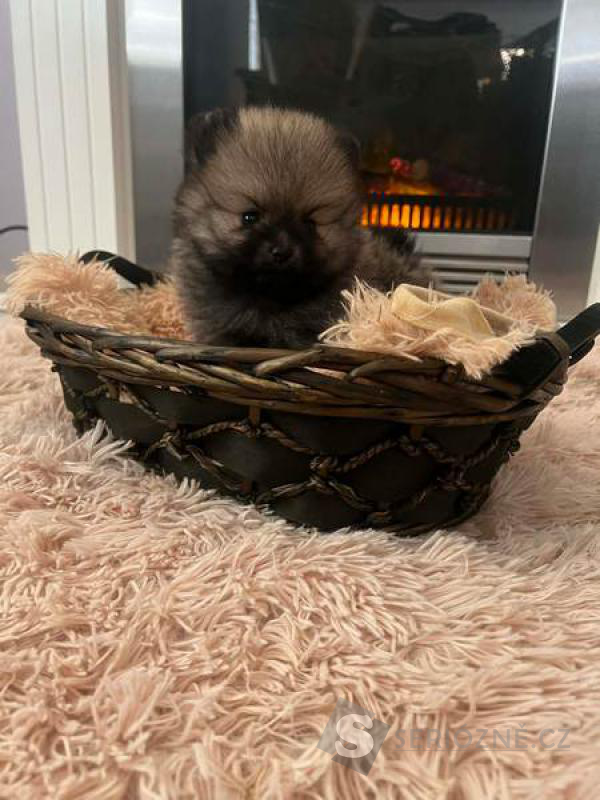 Pomeranian devět týdnů starý, nejvyšší kvality. Třikrát zbaven parazitů a dvakrát očkován. Každé štěně je dodáváno s čipem, pasem, klinickou prohlídkou od veterináře a startovacím balíčkem granulí. Za rodokmen se účtuje příplatek 50 eur.